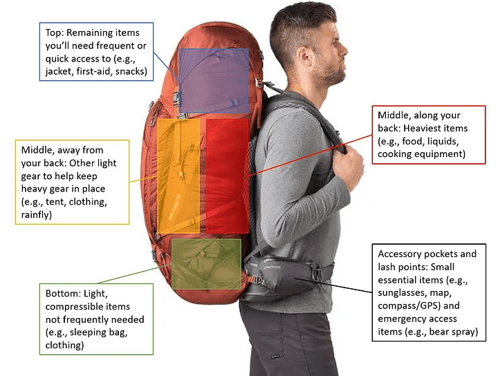 Arrange your gear in the backpack so that heavier items are positioned closer to your back and towards the centre. This will help maintain your balance and stability while hiking, reducing the risk of strain or injury. Utilise compression straps to secure the load and prevent shifting.