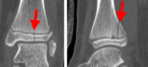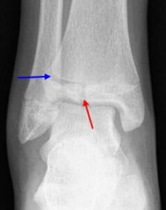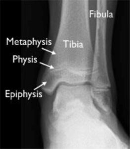In children and adolescents, ankle fractures typically affect the tibia or fibula, often involving the growth plates—specialized areas of cartilage near the ends of long bones. Growth plates play a critical role in bone development, gradually hardening into solid bone as the child matures. However, because these growth plates are the last parts of the bones to solidify, they are particularly prone to injury and fractures. As adolescents approach the end of their growth phase, growth plates begin to close and harden, making them susceptible to transitional fractures during this maturing stage. Two common types of transitional ankle fractures are triplane fractures and Tillaux fractures, which require specific treatment approaches depending on their severity and location (refer to the Treatment section for more details)