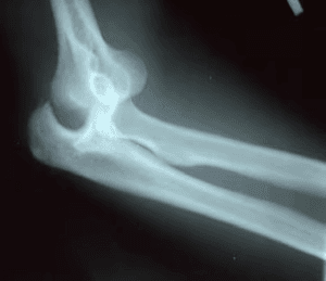 When an individual falls onto an outstretched arm, it can lead to the tearing of the collateral ligaments in the elbow. In cases where the tear is significant, the elbow joint may then become dislocated.