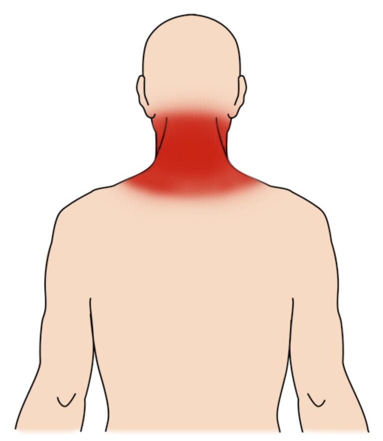 Illustration shows the typical area of pain from a neck sprain.