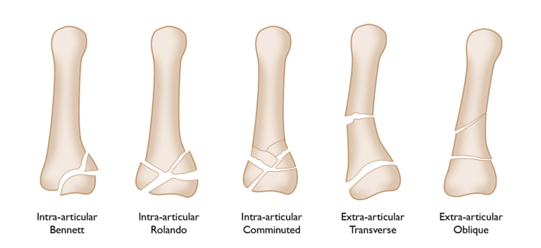 Fractures along the long portion of the thumb’s metacarpal, known as the metacarpal shaft, are also possible and are often simpler to manage than those affecting the joint.