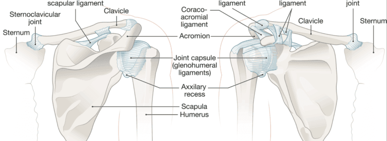 The shoulder is the part that serves as the link between the arm and the body. It is formed by the union of the ends of three bones: the clavicle, the scapula (shoulder blade) and the humerus, as well as muscles, ligaments and tendons.